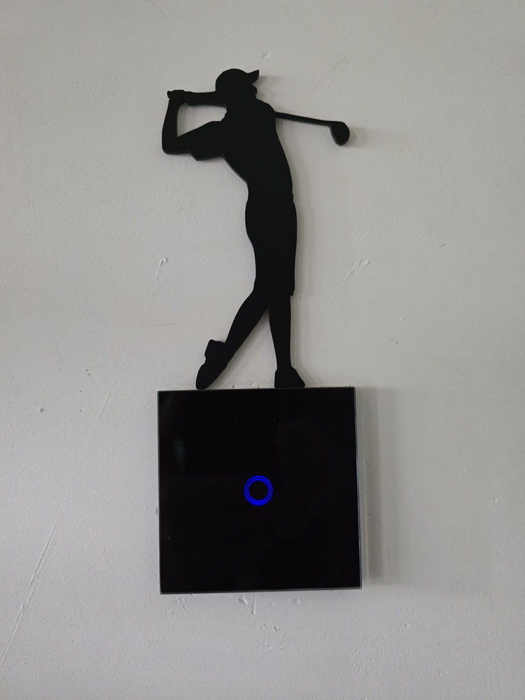 Deze versie is 12cm hoog en staat op een lichtschakelaar als decoratie.