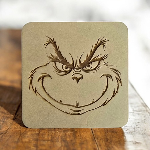 Deze onderzetters zijn met de laser gesneden en gegraveerd met afbeeldingen van de Grinch.