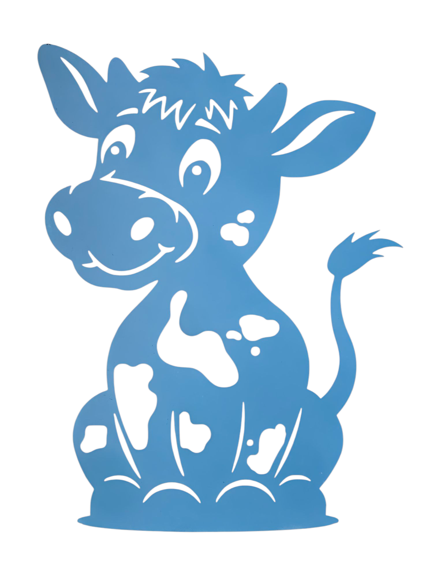 Hang eens een vrolijke koe aan je muur. Vooral bedoeld voor de kinderkamer maar hij zal zeker niet misstaan gewoon gezellig in de gang of buiten ergens aan schutting of muur.