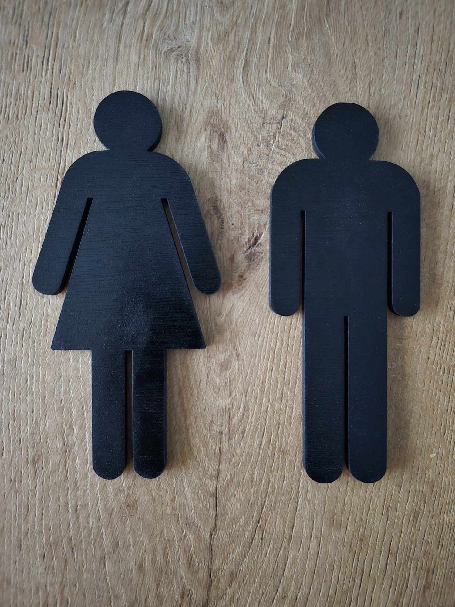 WC figuurtjes uit hout gesneden met de laser.